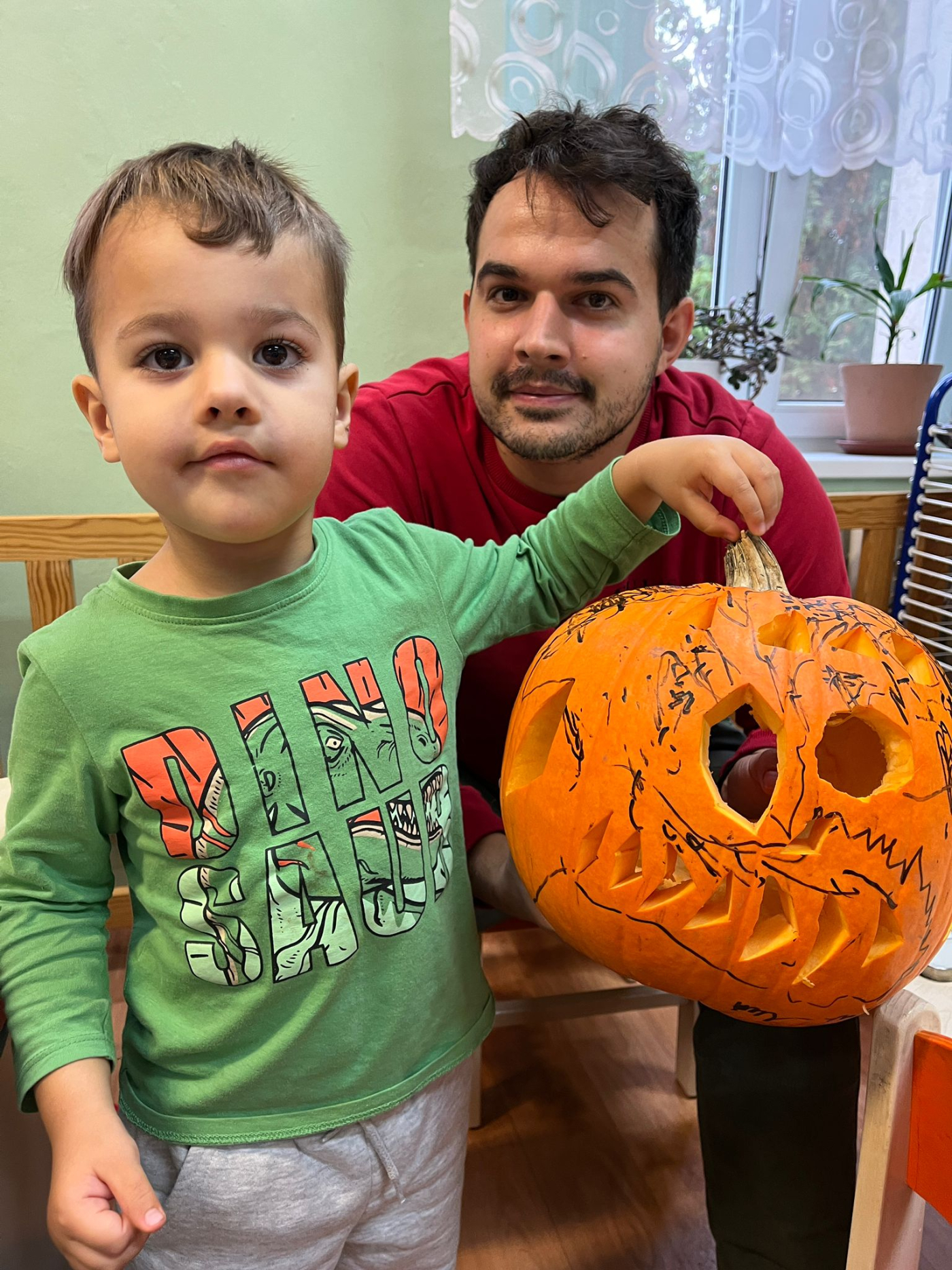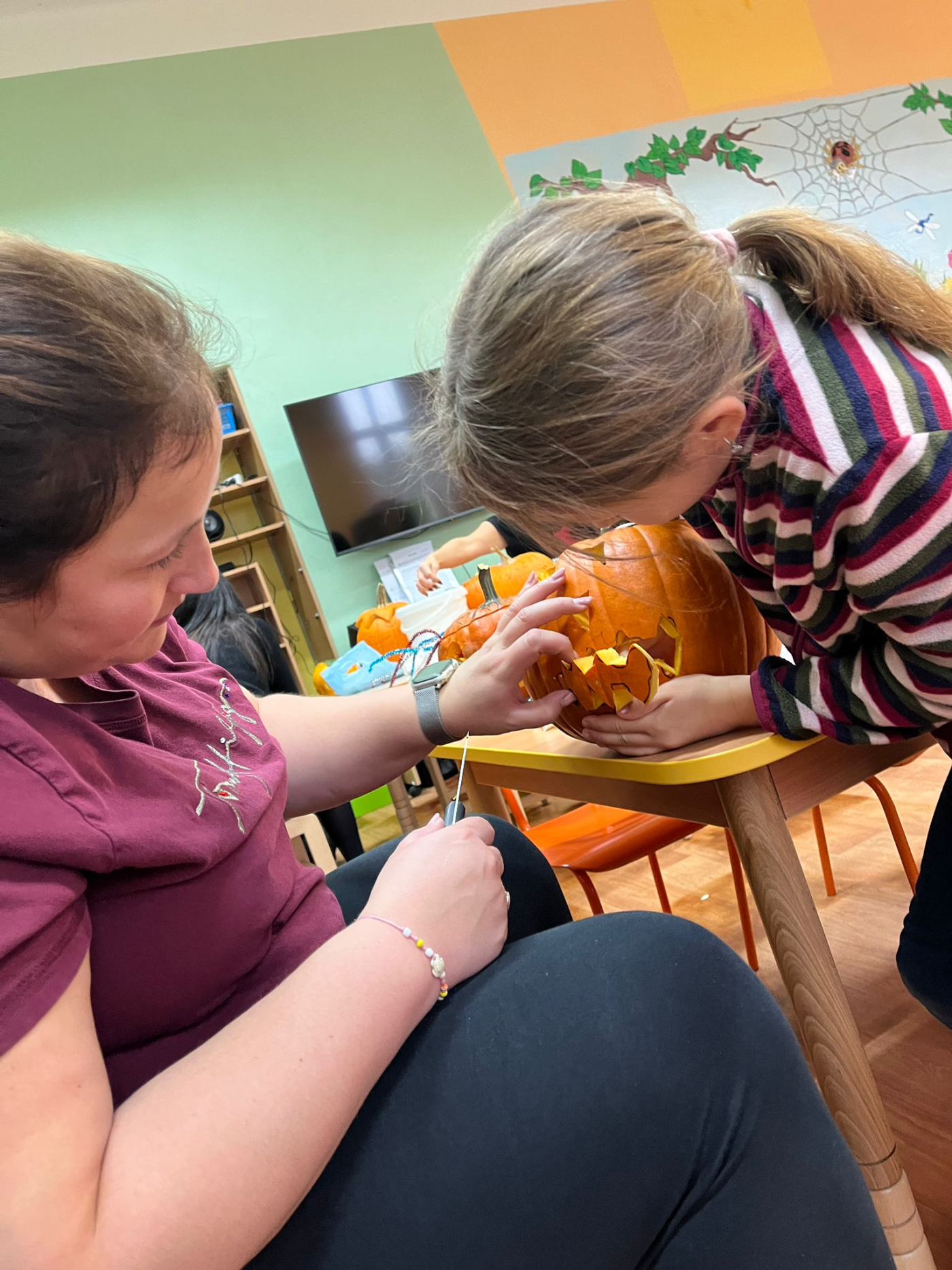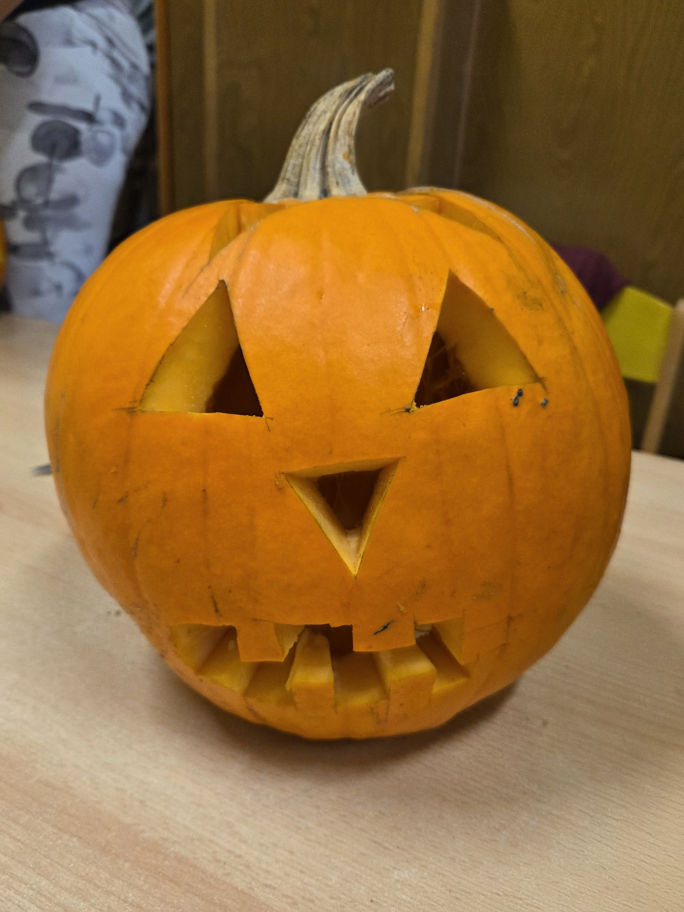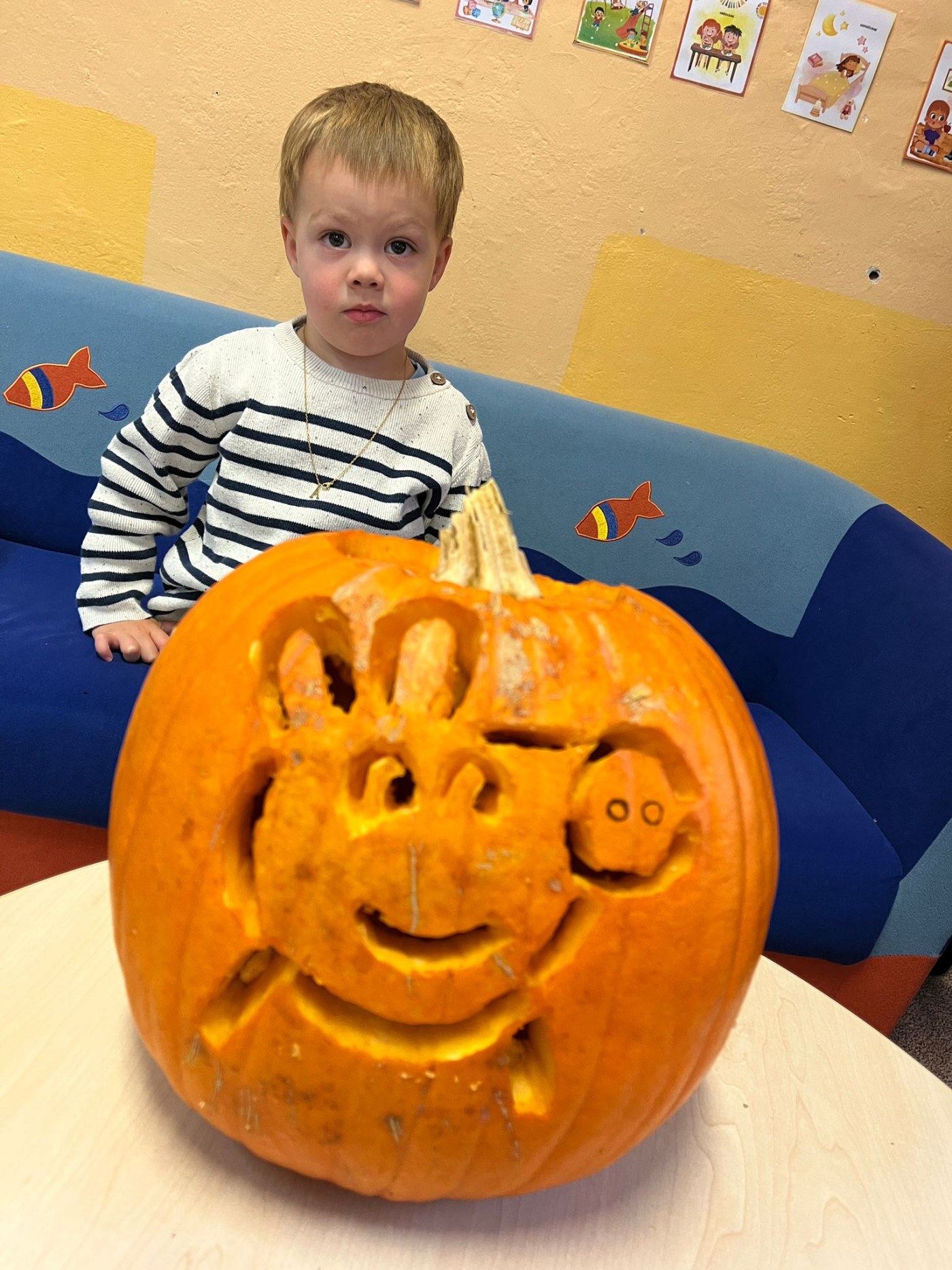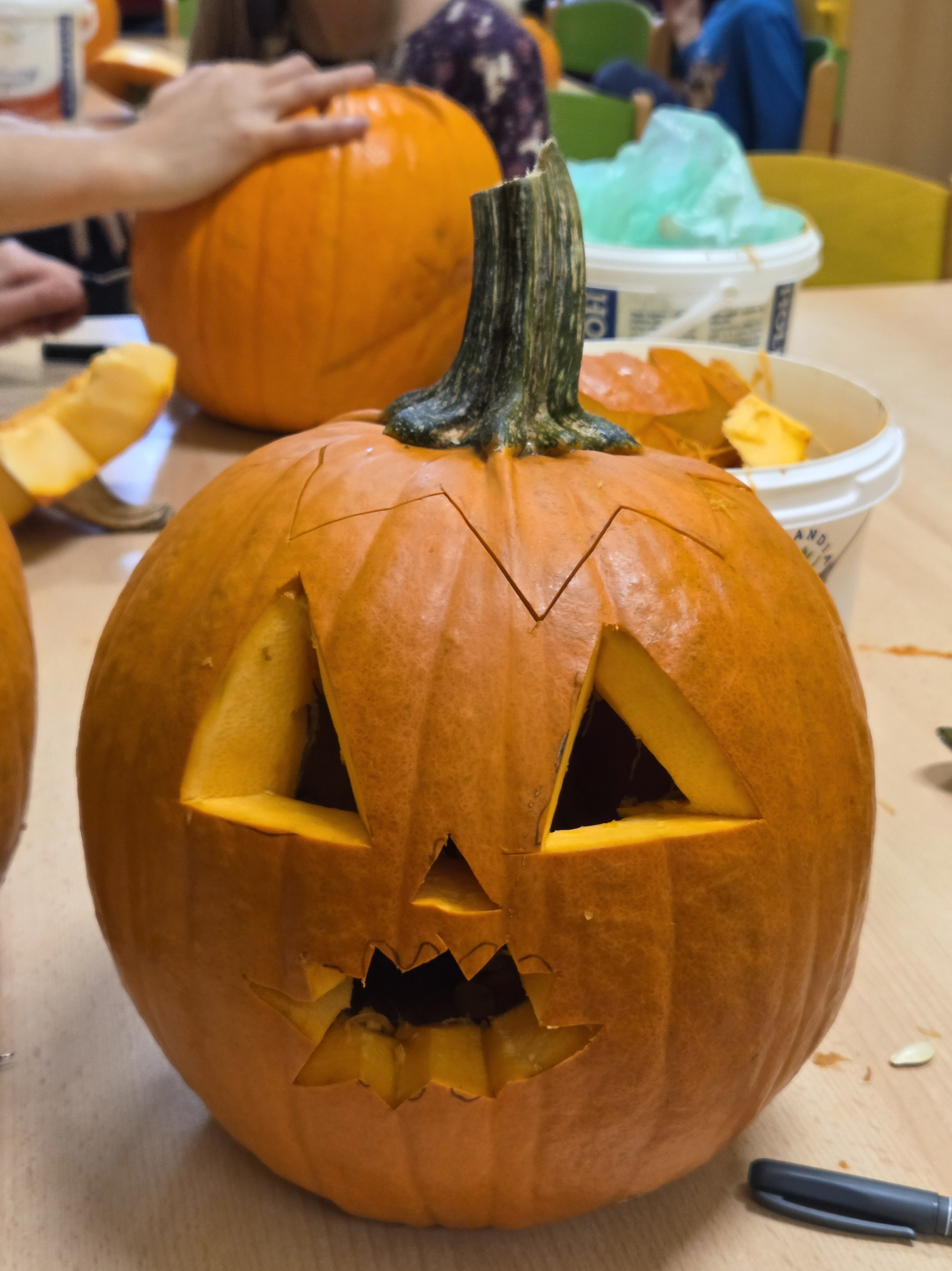 Středa 22. 10. patřila dýním. Ve školce se sešly děti se svými rodiči a sourozenci a všichni se pustili do dlabání dýní a vytváření strašidelných i veselých obličejů a dýňových postaviček. Všem se moc povedly a některé dýně zdobí i naši školku.